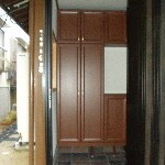 既存の玄関ドアの枠をそのまま利用して余分な工事をなくしてコストダウンしました。床タイルはお客様は150角位のものをご希望でしたが300角のものを提案し喜んでいただきました。