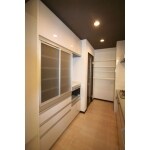 LDKがとても広いので、キッチン部分のみ天井を一般的な高さにして、落ち着いた雰囲気の中でお料理していただけるようにしました。