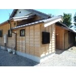 以前までのトタンを止め、全面杉板の鎧張りにリフォームしました。 今後年月を経て風合いが変化していくのも魅力の一つです。