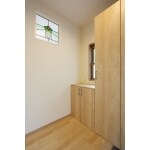 なるべく閉鎖感をなくしたいとのご要望をいただいたので、LDKへの出入口には建具を設けないご提案をさせていただきました。アーチ状の開口に縁取られたパントリーは「見せる収納」としてデザインの一部となっています。 また、玄関正面のステンドグラスはデザインとしてだけでなく、玄関の閉鎖感・圧迫感の解消、明るさ確保にとても効果的です。