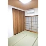 和室を狭くして、床の間部分を玄関から使う収納として活用できるようご提案しました。大壁仕様に変更し襖も連動引き戸に変更しました。和紙のクロスでモダン和室に変身。