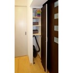 (旧株式会社ハウスドゥでの事例です。)廊下には掃除機や洗面用品、ストックをサッと出せる収納をご提案。