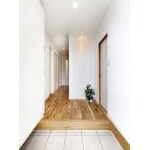 (旧株式会社ハウスドゥでの事例です。)気品漂う玄関ホール。正面の壁に大理石のモザイクタイルをあしらい、間接照明で趣深い空間をご提案。