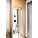 鏡付のシューズクローゼットの設置して収納量のアップ。