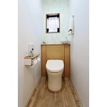 (旧株式会社ハウスドゥでの事例です。)背面に収納のあるタンクレストイレですっきりした空間に。リアルな木目のフロア材をご提案。
