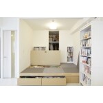 独立した既存の和室を分割し、奥にファミリークローク、手前に小上がりの畳コーナーを配置。