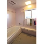 浴室は淡いピンクと白の組み合わせでゆったりくつろげる空間にしました。