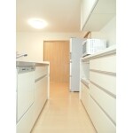 ハイバックカウンターによりキッチン手元まわりへの来客の視線も気になりません。