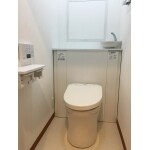 節水と収納をとの事でしたので、空間もスッキリ見えて節水、そしてタンクの場所が収納できる商品をご提案させて頂きました。