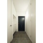 玄関収納を埋め込み、少し広くしなった玄関。 玄関の床面はタイル仕上げです。 廊下は玄関から続いて同じタイル仕上げとなっています。
