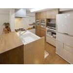 ・対面式にしてキッチンとダイニングをきっちりとスペース分け。 ・対面式キッチンにするため、配管スペースを工夫。 注文家具やライニングを設け解決しました。 ライニング上部は調味料棚になっています。 ・キッチンスペースに食器棚と冷蔵庫がおさまりすっきりとした空間になりました。