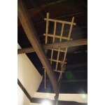せっかくの囲炉裏が使われていなかったので、今回活用できるように作り直しました。囲炉裏の天井部分に、昔使っていた荷車の骨組みを利用しました。車輪を外し、キレイにして火棚として再利用しました。囲炉裏の木枠部分は、オーダーメイドで作成しました。