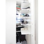 (旧株式会社ハウスドゥでの事例です。)玄関に縦に長いクローゼットをご提案。扉にも棚を取り付けることで、収納量が倍に。