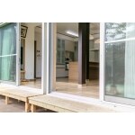 お父様専用のトイレ、洗面室を作ることで居室、寝室、水廻りの動線を一直線にしました。また、お風呂の入り口を二箇所にすることでご家族様用洗面室からもお風呂に入れるようにしました。 リビングの対面キッチンからは部屋全体を見渡せるようにし、お父様の異変にもすぐ気付くことができるよう配慮しました。