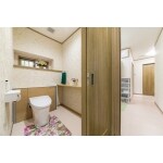 お父様専用のトイレ、洗面室を作ることで居室、寝室、水廻りの動線を一直線にしました。また、お風呂の入り口を二箇所にすることでご家族様用洗面室からもお風呂に入れるようにしました。 リビングの対面キッチンからは部屋全体を見渡せるようにし、お父様の異変にもすぐ気付くことができるよう配慮しました。