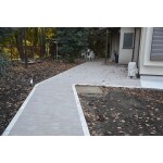 石貼りやコンクリート舗装は、雨水が浸透しないので、浸透性のあるインターロッキングで、門扉から門扉まで曲りを入れながら緩やかな勾配で、段差なく水溜りも気にしないで玄関扉まで、アプローチを作れます。