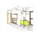 リビングの入り口の位置を玄関寄りに変更した事で、解放されたキッチンの空間をリビング内に取り込む事が出来ました。