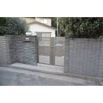 門構えは、見た目明るく広々した形・色調が良いと思います。 特に、廻りの塀・門柱は、細い線が多くある石材タイル貼りなので、重厚な重みよりリーズナブル・明るいカラー・シンプルなデザイン型のニューカムフィーを、お薦めします。