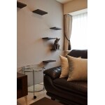(旧東京ガスリモデリング株式会社での事例です。)ネコちゃんのために何かしてあげたいという要望を受け、思い出の写真を飾ることができる飾り棚を兼ねたキャットステップを提案。デザイン的に美しく躍動感のある空間となりました。