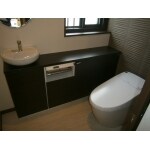 コーナータンクの洋式トイレをタンクレスのトイレに交換しました。以前は掃除道具が直に置いてありましたが、手荒い付の収納カウンターを設置し隠せるようになりました。明るく広々とした居心地のよいトイレと生まれ変わりました!