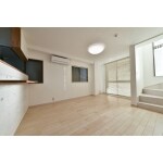 細かく区切られた空間は、 間仕切りを撤去することで開放的なLDKに。内装は、白を基調とし明るく気持ちの良い空間に。間仕切り壁には採光・アクセントになるガラスブロックを設置。