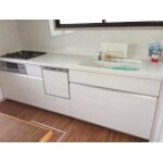 もともとのキッチンの高さも80㎝と低く、切ったり作業するのに使いづらいのがお悩みでした。タイルの溝に油やほこりの汚れがたまり、掃除も大変でした。 キッチンパネルを貼り、油がついてもさっと拭けて、お掃除楽々です。天井のクロスも貼り替え、床もクッションフロアにしたので、キッチン周りが一気に明るく、お掃除もし易くなりました。特に換気扇は、汚れが付きにくいだけでなくお手入れも簡単なので、今までのものよりお掃除の頻度も減ります。 ビルトイン食洗機で、作業台も今までより広くなり、作業もよりしやすくなりました。 施工前にはご夫婦でどのキッチンになさるかショールームで見学にいらっしゃいまして、ご案内させていただきましたが、とてもお気に入り頂き嬉しく思います。