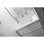 白で統一し、明るく広々としたイメージで、 奥様の身長に合わせた高さのキッチンを選びました。 また、お水にこだわりのあるお客様でしたので、浄水器のついたタイプのキッチンをご提案させていただきました。 洗面台もキッチンと同じく白で統一。 キッチンから廊下、洗面台、トイレの床は、リビングに合わせた色合いのフローリング。ノンワックスで、車椅子にも傷みにくい耐久性の高い床材をご提案させていただきました。