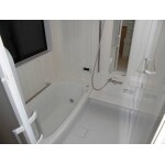 ユニットバスへ取り替え,冬でも暖かく入浴できるようになりました。ユニットバスはTOTOの「サザナ」をお選びいただき,落ち着いた色合いで寛げる空間となりました。
