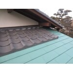 葺き替え前の画像です。錆のような色の部分が酸性雨の影響を受けて、銅板に穴が開いたり、薄くなっている部分です。