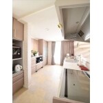以前は独立していたキッチン。今回間取りを変更により以前とキッチンの配置を替え、キッチンからリビングが見渡せるようにしました。 背面収納も充実させ、リビングからの光の差し込む明るいキッチンとなりました。