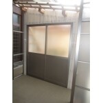 室外機置き場利用して、上部、下部に分けて物入れ小屋の 増設工事