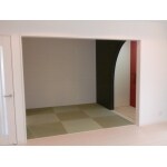 また、壁を黒、床の間の壁を赤にすることでメリハリのありコントラストになりより印象的になりました。