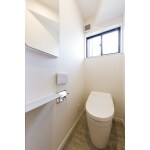 階段下であり、幅も奥行きも狭いトイレでしたが、埋め込み収納と埋め込みペーパーホルダーの設置でスッキリとした空間に仕上げました。またカラーは白を基調にしたことで狭さを軽減させる効果がでました。