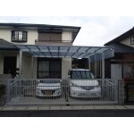 大型のカーポート、フラット屋根のアルミシルバー色と、とてもスタイリッシュでモダンな仕上がりとなりました。