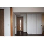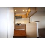 リビングとの仕切りとなっているカウンター収納を撤去し、既存のL型キッチンプランを90度回転させる形で、リビングへ対面となるようにしました。また、キッチンには食品庫の造作とお手持ちのカップボードを置きたいとのご希望も。食品庫はお米等のストックからトイレットペーパーと言ったかさばる日用品まで仕舞えるようにしたい、とのことだったので、リビング出入り口近くの壁面に奥行きを深めにした収納を造作。内部は可動棚を取り付けました。お手持ちのカップボードは食品庫脇に設置を。
