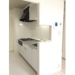 奥行きがあることを活かして、キッチンと壁の間に物を置けるスペースを作りました。またリビングとの間仕切り壁を一部開口して、キッチンからでもリビングの様子が簡単にみれるようにご提案いたしました。