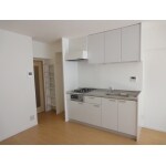 以前は玄関から丸見えのキッチン。ガスコンロは置き型のタイプでした。 リフォーム後は玄関との間には扉を設置。冷蔵庫の横には収納棚も設置しました。 以前は茶色でしたが、白色に変更しお部屋全体も明るくなりました。