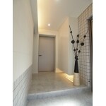 玄関の室内側、土間側共に同じ大理石で仕上げました。広がりが生まれましたね。