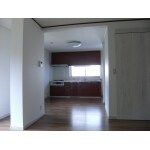 かなり古いが使い勝手にあまり不満が無いキッチン。 作り付けの換気扇フードやガスコンロの前のステンレス貼りがあまりおしゃれではない。