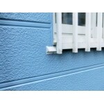 白い窓枠が際立つ、さわやかなブルーの外壁です。 窓サッシ、シャッター、雨樋等、細かい箇所まで、しっかり丁寧に施工させていただきました。