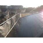 高圧洗浄後、雨押えの貫板の点検、釘撤去してビス止め、トタン部ぺーパーケレンをしっかりしエポキシ系のさび止め、本体吸い込みが激しかったのでプライマー2回塗布、中塗り、上塗り
