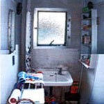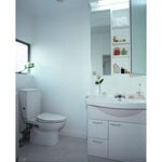 (旧東京ガスリモデリング株式会社での事例です。)サニタリーは洗濯機の排水がなく、浴室に流していたので、洗面台のあったところの排水管を利用して洗濯機スペースを作りました。また縦管の配管スペースをうまくかわしながら洗面化粧台と化粧鏡を設けました。