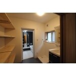 段差解消、断熱だけでなく、洗面所には可動棚を設置して収納を確保。