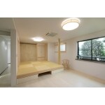 LDKにある畳の空間は、用途に合わせて自由に使い分けることが出来ます。 普段は、畳の一部を取り外してテーブルを設置し、ご夫婦や週末に帰っていらっしゃる娘さんのご家族とのくつろぎの場として。 畳の下は大容量の収納となっており、遊び心と機能性を兼ね備えたデザインをめざしました。