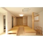 嫁いだ娘さんが家族で週末によく帰ってくるということで、 リビングにある畳の空間は、用途に合わせて自由に使い分けることが出来るようにしました。日常はタタミベンチとして大テーブルをセットする。畳下には大容量の収納を製作。ご夫婦にとって居心地が良く可変性のある空間を目指しました。