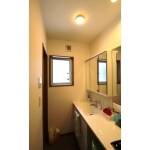 洗面脱衣の機能と洗濯などの家事機能を分けることをご提案いたしました。 洗濯機が2階に設置することは奥様も逆にラクになるとお話しいただけました。 洗面室は主に奥様とお嬢様の洗顔・歯磨き・お化粧等の身だしなみと、脱衣空間に。 洗濯などの家事は2階ホールと洋室4.5畳の押し入れと2階トイレの間取り変更でランドリースペースを新設しました。 2階ホールの洗面化粧台は主にご主人様の洗顔・歯磨きと洗濯物の下洗いなどで活用頂くことで決まりました。