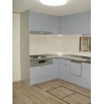 カウンター台を撤去し、L型キッチンで作業しやすい動線とまりました。 キッチン全体も明るくなりました。