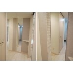 玄関に姿見がほしいというご要望でした。お家の顔となるべき玄関部分でしたので、素材感の違うタイルやクロスで表情を出す提案をさせていただきました。