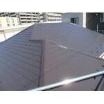 経年劣化による色褪せやひび割れも発生、棟板金も釘が緩んで抜けて浮き始めていました。ひび割れは補修し、板金部分はパッキン付きビス止めで浮きを抑えました。これで強風にも安心していただければと存じます。