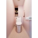 スタイリッシュなトイレとパープルのクロスで品よくまとめて